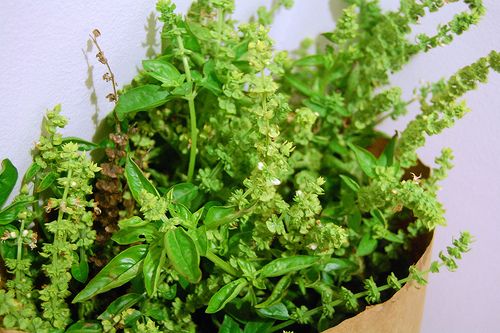 Трава базилика содержит эфирные масла, дубильные вещества, аскорбиновую кислоту, гликозиды, сахар, белки, минеральные вещества. Заготавливают траву перед цветением или во время него. Трава базилика имеет приятный аромат, напоминающим аромат гвоздики или мускатного ореха, и пряный, слегка холодящий, солоноватый вкус.