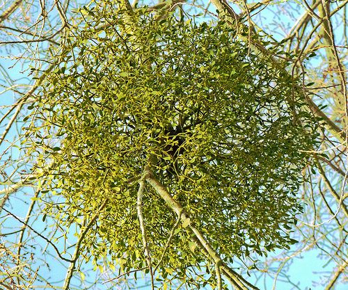 Этот оригинальный, вечнозеленый, паразитирующий полукустарник принадлежит семейству Ремнецветных и имеет много названий: птичий клей, ведьмина метла, дубовая метла, бабье проклятье.
