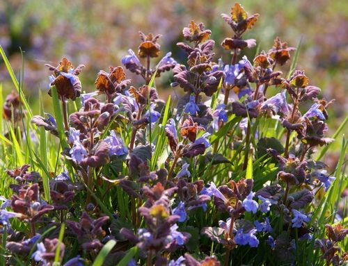 Многолетний сорняк семейства губоцветные, побеги лежачие, ползучие, до 1,5 м длиной. Стебли ветвящиеся высота от 15 до 60 см. Листья супротивные, городчатые. Цветы двугубые, маленькие, сине-фиолетовые или светло-голубые, расположены по 2-3 в пазухе листьев. Цветение с начала мая до июля. Растертые листья будры имеют приятный мятный запах. Произрастет везде — в рощах, лесах, садах, под кустарниками, на лугах и по берегам рек. Химический состав весь не известен. Растение содержит эфирное масло, дубильные вещества и холин.