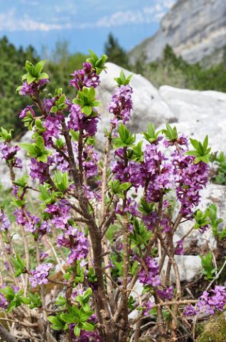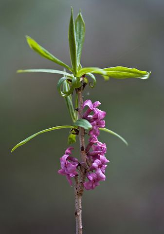 Трубчатые цветки довольно мелкие розоватого оттенка имеют сильный аромат. Они собраны в пучки по 3 – 5 штук на прошлогодних ветвях и распускаются до того, как появятся листья. Плодом является шаровидная или овальная костянка с одним семенем.