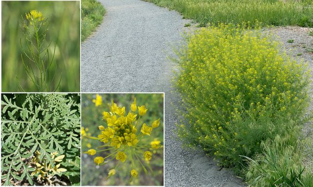 Небольшие желтоватые цветки с очень узкими лепестками собраны на верхушке побегов в соцветие кисть. Время цветения этого растения приходится на апрель – май, а коричневые семена в плодах - стручках созревают в начале августа.