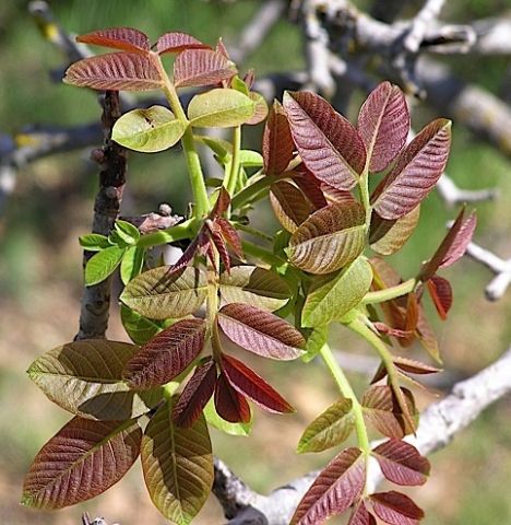 Листья содержат большое количество каротина. Препараты на основе грецкого ореха применяют как тонизирующее при общей слабости, недастатке витаминов, кожных болезнях, как противопоносное и противоглистное средство. Отвар из листьев используют для ванн и обмываний при ревматизме, подагре и различных болезнях кожи – сыпях, угрях, гнойниках, экземах и для полосканий при ангинах и болезнях десен.