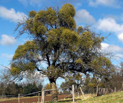 Этот оригинальный, вечнозеленый, паразитирующий полукустарник принадлежит семейству Ремнецветных и имеет много названий: птичий клей, ведьмина метла, дубовая метла, бабье проклятье.